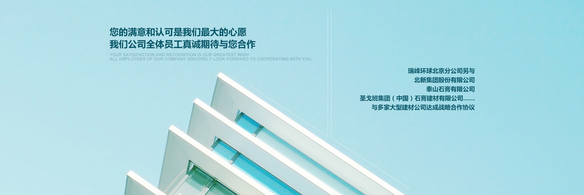 北京市朝陽區(qū)金盞鄉(xiāng)科鷹科技園內(nèi),是北京******的建材營銷商之一,專業(yè)銷售各種高檔建筑材料的現(xiàn)代化公司.本公司已與多家大型建材廠家達成合作協(xié)議:泰山石膏建材有限公司,北新建材有限公司,濱州綠邦有限公司,河北金秋有限公司,北京金隅砂漿有限公司,歐文斯科寧(中國)投資有限公司,湯姆節(jié)能建材(北京)有限公司等.更與國外泰國工廠生產(chǎn)的:美巖板,清水板,木絲水泥板,木紋木絲板……簽訂了國內(nèi)經(jīng)營權(quán);與德國高新企業(yè)超薄石材簽屬超薄巖板國內(nèi)代理權(quán)(超薄巖板,可彎曲石材,厚度1.5~2mm左右)與臺灣合作研發(fā)礦石板(以最好的效果提現(xiàn)礦石的效果).好的工程絕對少不了一個好的建筑材料,瑞峰環(huán)球攜手各大品牌為您的工程保駕護航.